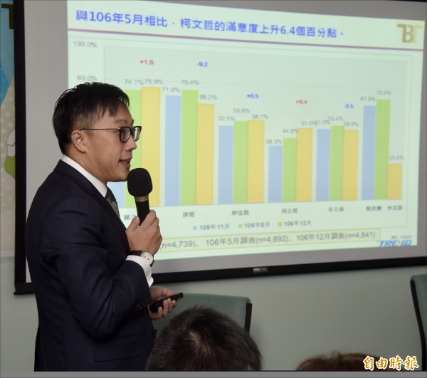 新台灣國策智庫發布民調結果顯示,六都民眾有四十五.五%對蔡英文總統感到不滿意,廿八.八%表示滿意;賴清德院長的滿意度為四十.三%,不滿意為卅三%。