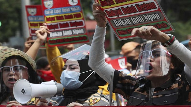 印尼全國大罷工聲討惡法!抗爭者宣稱新法侵害勞權 警方出動水炮車、催淚瓦斯強力鎮壓