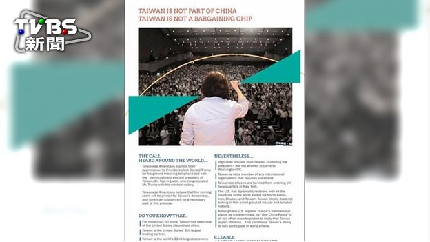 華盛頓時報全版廣告:台灣不是談判籌碼