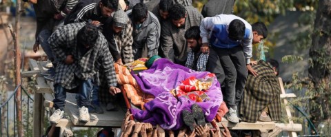Kashmiri villagers carry the body of local rebel Waseem Ahmad, during his funeral procession in Drubgam, 48 kilometers (30 miles) south of Srinagar, Indian controlled Kashmir/AP