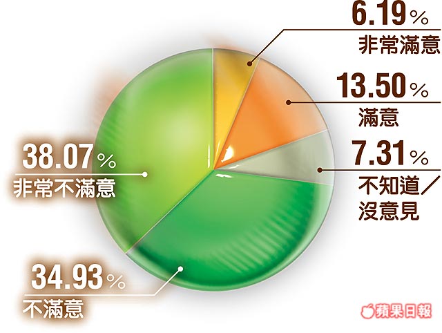 成功樣本:1442份: 非常不滿意38.07%,不滿意34.93%,滿意13.5%。