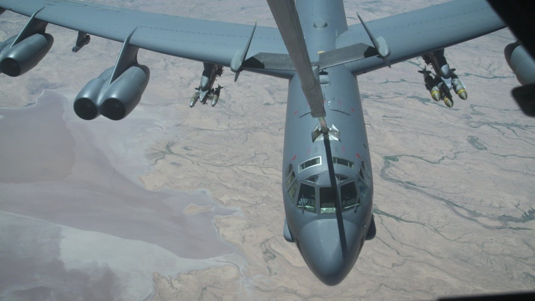美軍B52轟炸機在南沙群島內中國架設的人工島附近飛行,與中國互別苗頭