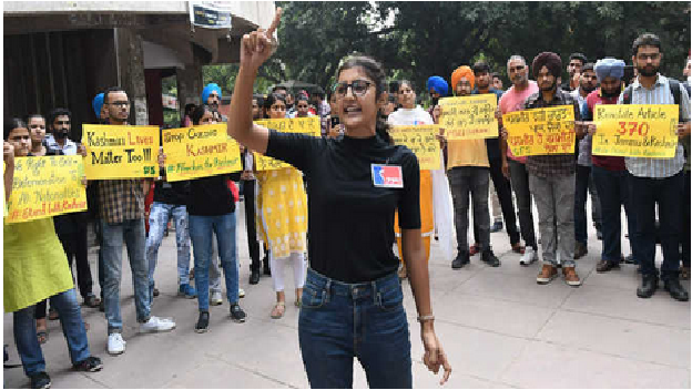 印度學生團體抗議政府鎮壓喀什米爾獨立。