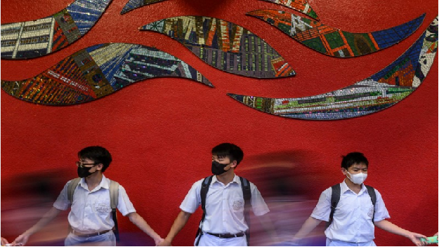 學校強逼脫口罩 上百名中學生築人鏈抗議「白色恐怖」。